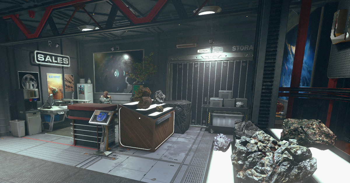El Liga Minera en Neón Es una tienda totalmente dedicada a rocas y minerales, lo cual es bastante bueno. Si buscas tungsteno u otras rocas raras como uranio, dirígete a la tienda y cómpralos. Sin embargo, vale la pena señalar que la Liga Minera no vende liquidos o gases – solo rocas. Así que si necesitas algo Helio-3 Para impulsar su puesto minero autosostenible, necesitará ir a otra parte.