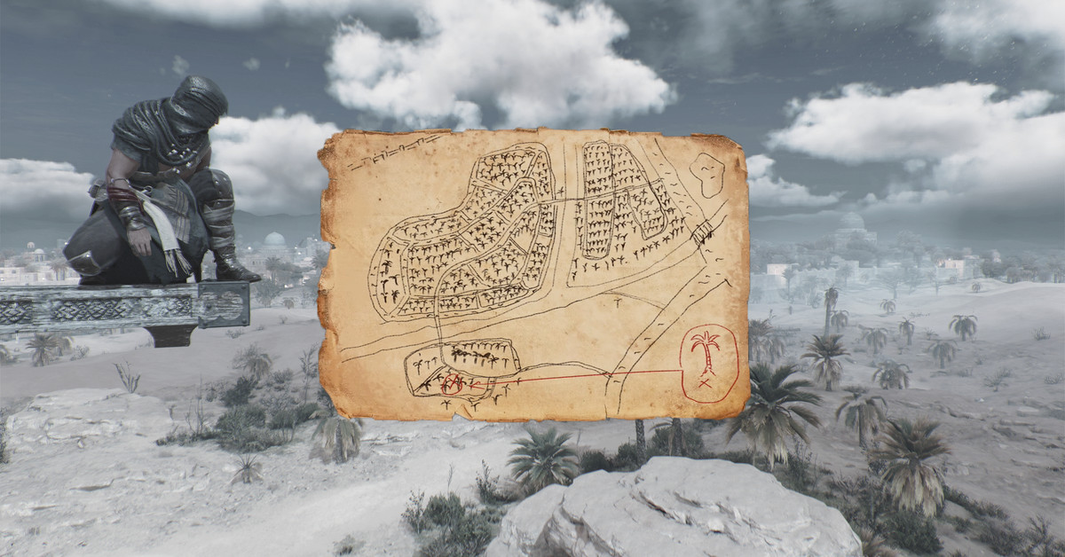 Nuestro Espejismo del Credo del Asesino Alegría bajo las palmeras llorosas La guía Enigma le dirá dónde encontrar el distrito Wilderness. Alegría bajo las palmeras llorosas pista y luego dónde encontrar el tesoro.